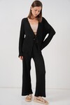 Kadin Önü Bagcikli Bluz Pantolon Ikili Takim