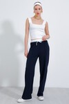 Merterium Kadın Siyah Bol Paça Çımalı Pantolon 6662