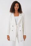 Kadın Siyah Çift Düğmeli Çizgili Blazer Ceket 0699