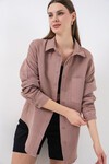 Kadın Tek Cepli Oversize Müslin Gömlek 20353 - Mürdüm