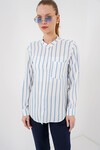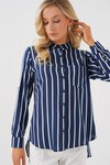 Merterium Kadın Uzun Kollu Çizgili Gömlek 20283 - Siyah