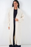 Kadin Yün Dokulu Katlama Yaka Uzun Triko Hirka