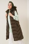 Kapüsonu Suni Kürklü Uzun Tesettür Yelek