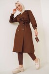 Merterium T5853 Kruvaze Yaka Tesettür Trençkot - Siyah